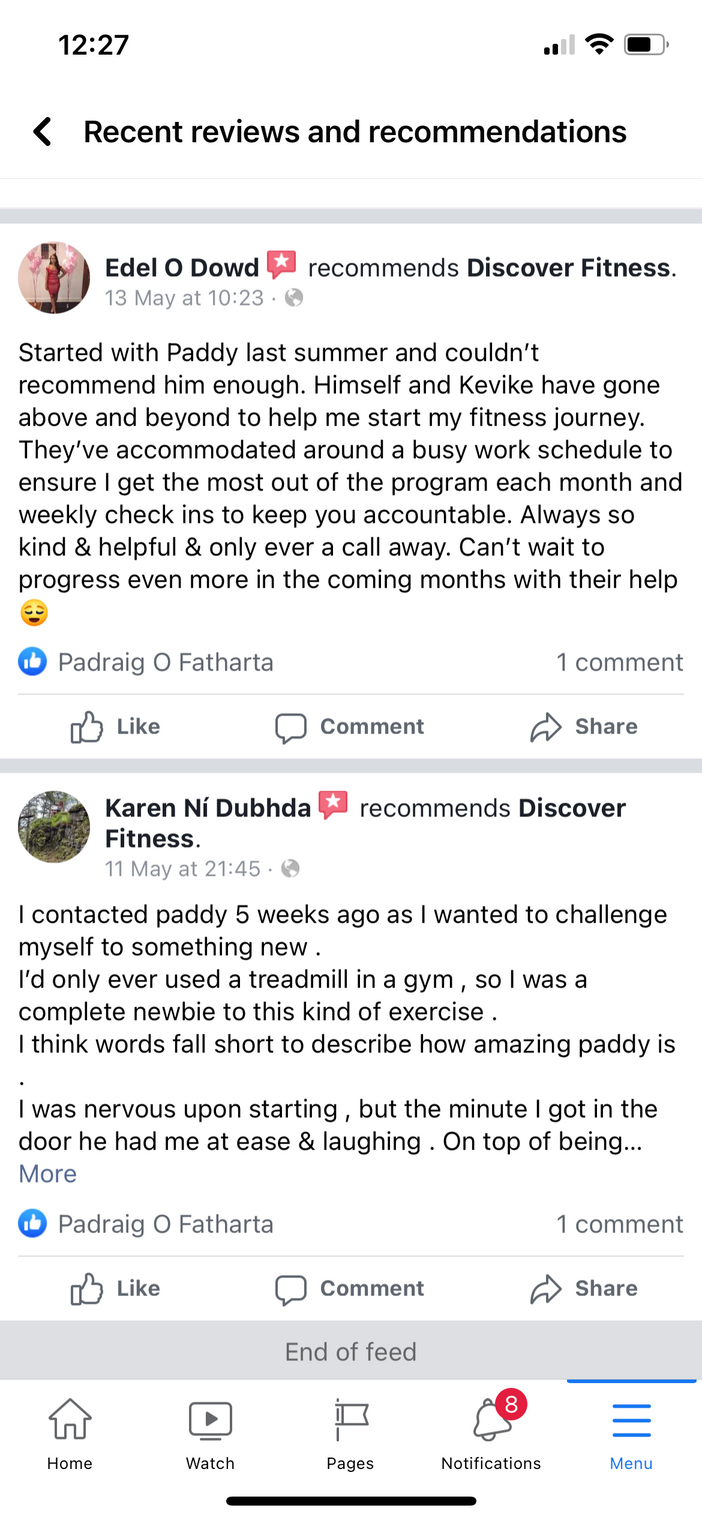 '" I was nervous upon starting , but the minute I got in the door Paddy had me at ease & laughing. My overall strength and fitness has improved for sure , I am now able to perform exercises I would never have attempted"